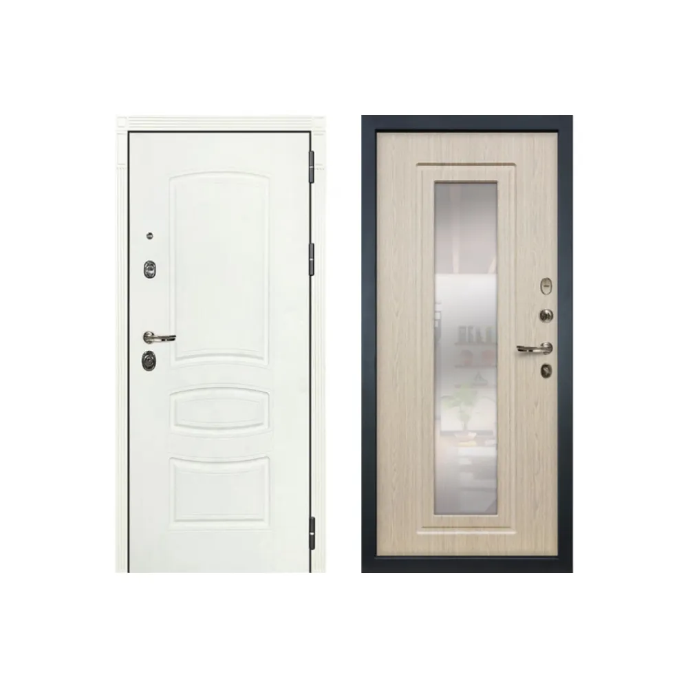 Металлическая дверь Лекс Сенатор Белая с зеркалом беленый дуб ( панель №23)